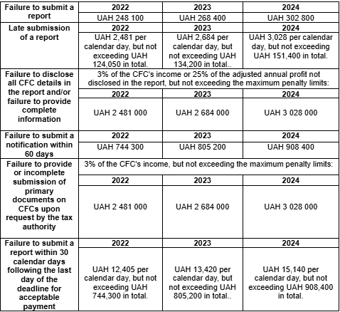 - Failure to disclose all CFC details and/or providing incomplete information in the report: 3% of the CFC’s income or 25% of the adjusted annual profit not disclosed in the report, but not exceeding ₴3,028,000.